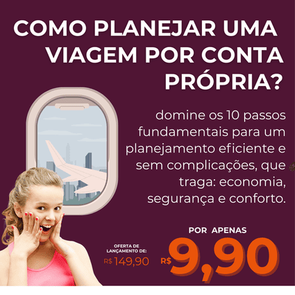 E o melhor? O acesso ao “Guia − A Viagem Perfeita em 10 passos” está com um desconto incrível: de R$ 149,90 por apenas R$ 9,90.